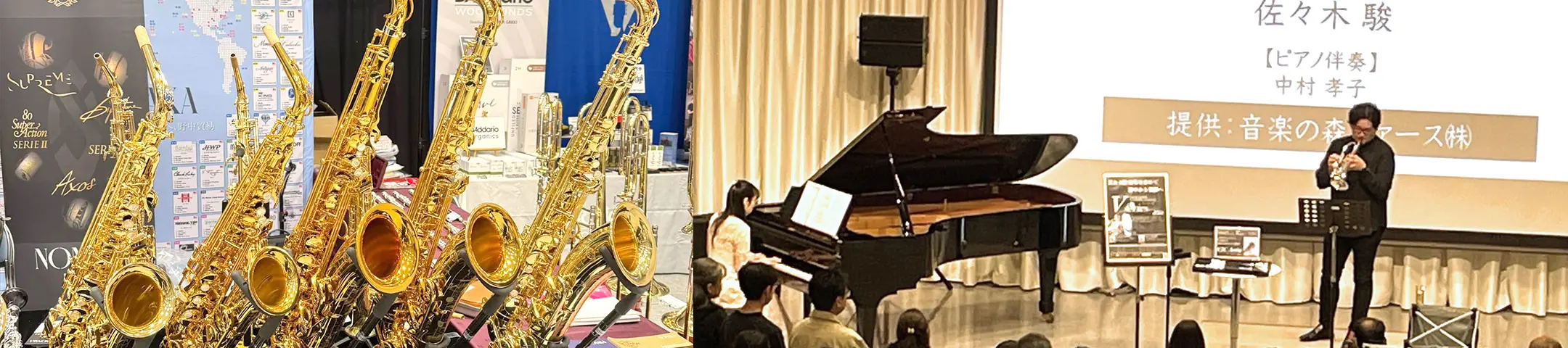 出展企業 | 音楽の森ヴァース(株) / カシオ計算機(株) / (株)グローバル / 眞田貿易(株) / (株)全音楽譜出版社 (株)ドルチェ楽器 /パール楽器製造(株) / (株)ビュッフェ・クランポン・ジャパン / (株)プリマ楽器 / 野中貿易(株) / (株)宮地商会 / (株)山野楽器 / (株)TAKAYAMA&CO.(GLANZ Trombone) / willie’s Custom Brass 他 |